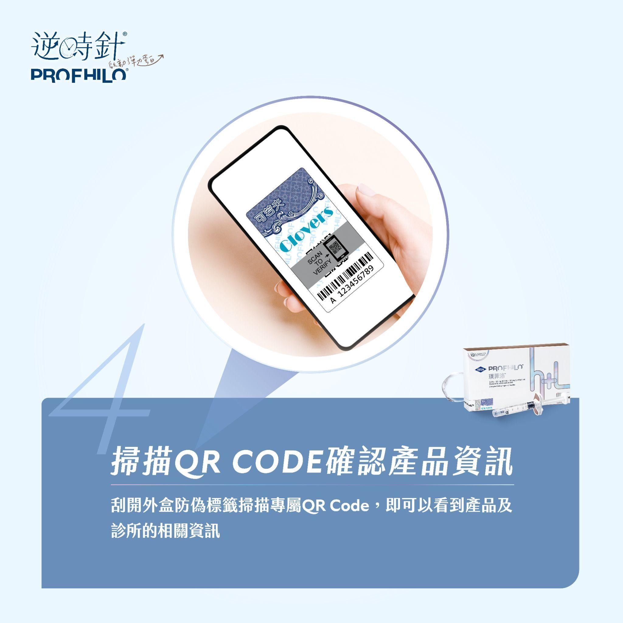 為了確保您的施打安全與療程效果,請務必掌握以下的「3確認1掃描」步驟,在施打時親自向診所確認您使用的Profhilo是台灣衛福部核准的原廠正品: